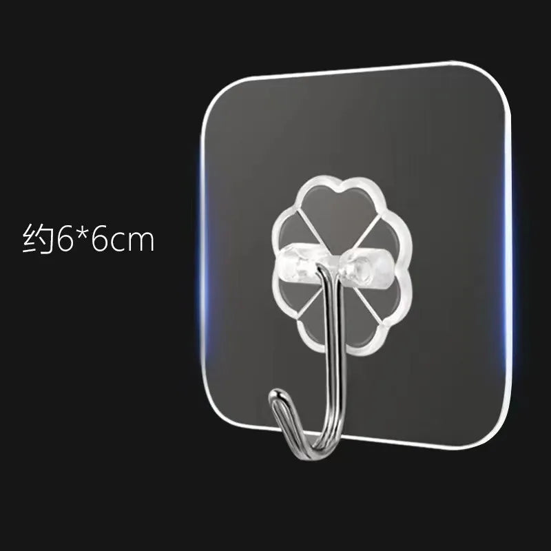 10PCS Transparent Stainless Steel Strong Self Adhesive HooksKey Storage Hanger for Kitchen Bathroom Door Wall Multi-Function Organizer